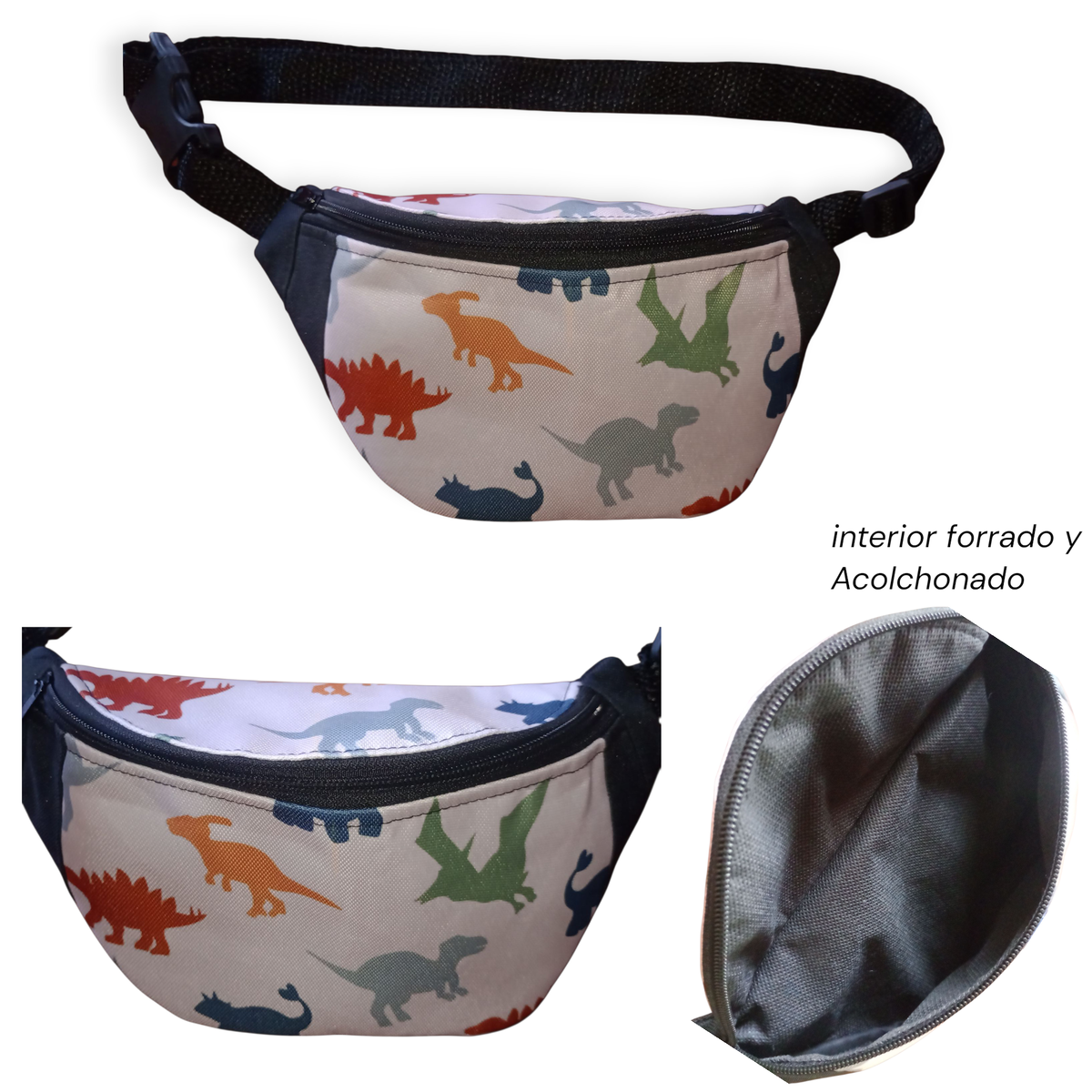 Riñonera infantil súper cómoda, liviana y práctica, ideal para llevar claves, celular, golosinas o juguetes pequeños. 🦕💚